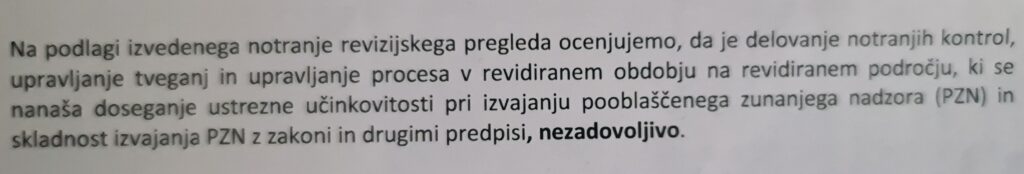 - inšpektorji službe za notranji nadzor na terenu niso delovali na podlagi zakonsko usklajenih predpisov,