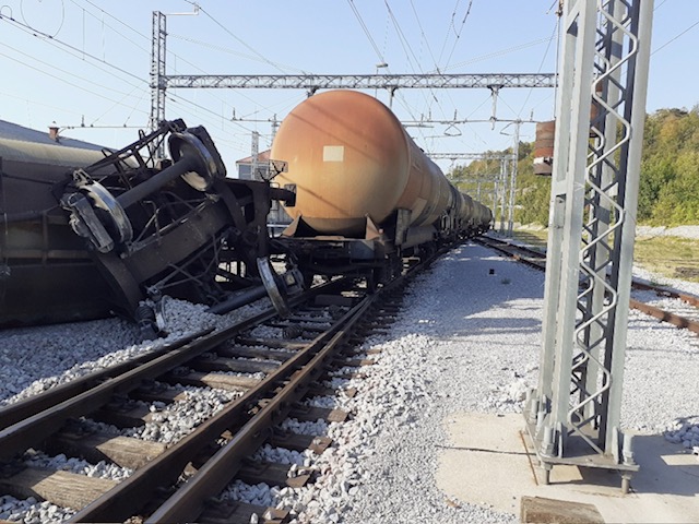 Avgusta lani se je na postojnski progi spet zgodila nesreča. Prišlo je do iztirjenja vagona z dizelskim gorivom. / Slovenske železnice